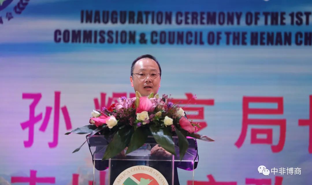 南非约翰内斯堡市环境基础建设局局长孙耀亨先生:祝贺秦同松先生当选南非河南商会会长,我与河南人也是半个老乡了,因为我祖籍是安徽。今天从河南人在南非社会各个行业领域发展的情况看,为中南两国人文教育和经贸发展做出了一定的社会贡献,在未来的发展之路上,希望大家不忘初心,发挥自身优势和特长,书写中南人文教育和经贸发展的新篇章。