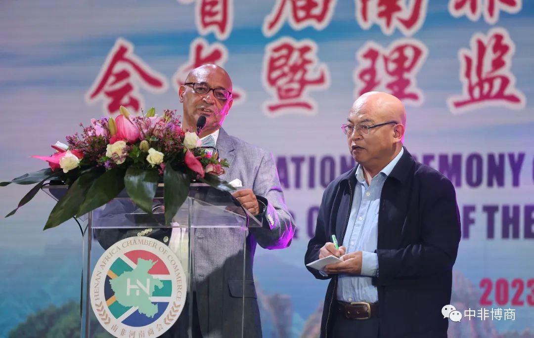 2023年4月23日南非时间晚19时许,南非河南商会首届就职典礼仪式在南非约翰内斯堡黄金城金色大厅隆重举行。出席商会活动主讲嘉宾有南非河南商会首届会长秦同松先生、南非国会议员张晓梅博士、南非华人警民合作中心主任李新铸先生、南非约翰内斯堡市环境基础建设局局长孙耀亨先生、南非非国大副秘书长、中执委常委、国家领导人莫寇亚尼先生、驻南非约翰内斯堡总领馆副总领事周育江先生,邀约出席嘉宾有南非总统特别顾问亨锐-斯米斯先生、驻南非约翰内斯堡总领馆领事杨惠博先生、中央电视台首席代表赵一楠女士、华人华侨顾问陈裔桥先生、约堡市卫生部独立董事姒海先生、南非洲粤港澳 总商会会长吴少康先生、南部非洲上海工商联谊总会会长李林国先生、南部非洲江苏同乡总会会长陈辉先生、南部非洲浙江商会 会长徐家祥先生、全非洲华人女企业家工商联合总会会长何增林女士、南非约翰内斯堡唐人街管理委员会主任陈少光先生、南非约翰内斯堡唐人街管理委员会荣誉主任蔡庆先生、南非约翰内斯堡唐人街管理委员会荣誉主任马晓雷先生、南部非洲中国义乌国际小商品总商会会长方梧彬先生、南非杜省中华公会会长潘明怡先生、南部非洲中国企业家协会会长李国东先生、南非中国文化艺术交流协会、约堡华星艺术团团长黄晶晶女士、南部非洲广州文化经贸协会会长陈玉玲女士、南非东方文化街管理委员会、全非洲黑龙江总商会会长于洋先生、南非豪登省中国和平统一促进会会长杨斯淞先生、南非华人羽毛球协会会长范大伟先生、南非中国人高尔夫球协会会长南健先生、南非华文教育基金会会长韩芳女士、南非中国合作论坛主席盛立华先生、南非祖魯-中国文化促进会/中非投资联盟会长李英女士、南非西北省福建同乡会会长林学平先生、西北省警民合作中心主任林华龙先生、南非比勒陀利亚福建同乡会会长 何明先生、南部非洲陕西总商会会长杨军先生、非洲上海总商会会长朱寿南先生、南非客家联谊会会长温耀滨先生、全非洲和平统一促进会/约堡华人警民合作中心常务副会长张钊先生、南非巴蜀商会会长袁治兵先生、南非上海商会荣誉会长沈少波先生、南非紫荆会会长赖小雯女士、南非广西商会会长覃昌华先生、南部非洲华人学者工程师联合会常务副会长曹大松先生、南非深圳商会常务副会长杨亮先生、南非贵州商会常务副会长袁勇先生、南部非洲浙江企业家协会常务副会长曹吾权先生、南非湖北商会副会长胡乐先生、南非重庆商会副会长石康志先生,应邀出席的还有中南两国企、事业单位领导代表和旅南河南籍父老乡亲。